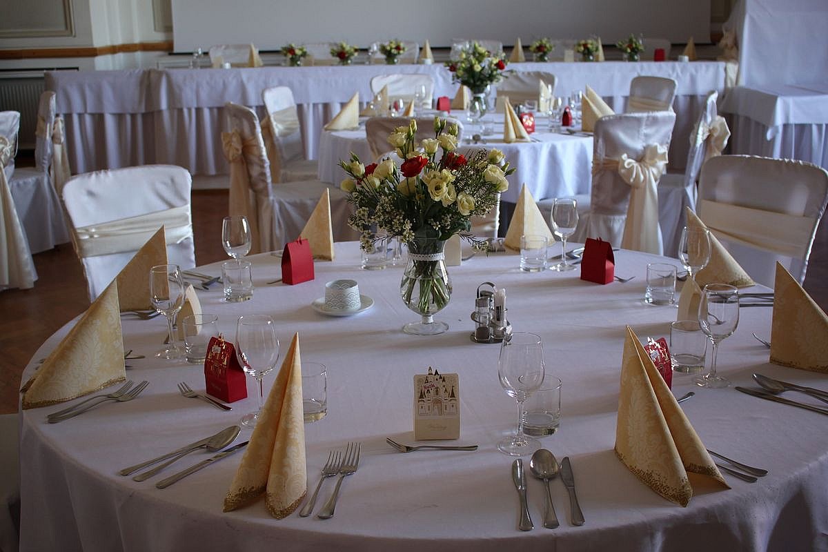 Smotanová svadobná výzdoba s červeným detailom, zámok Smolenice