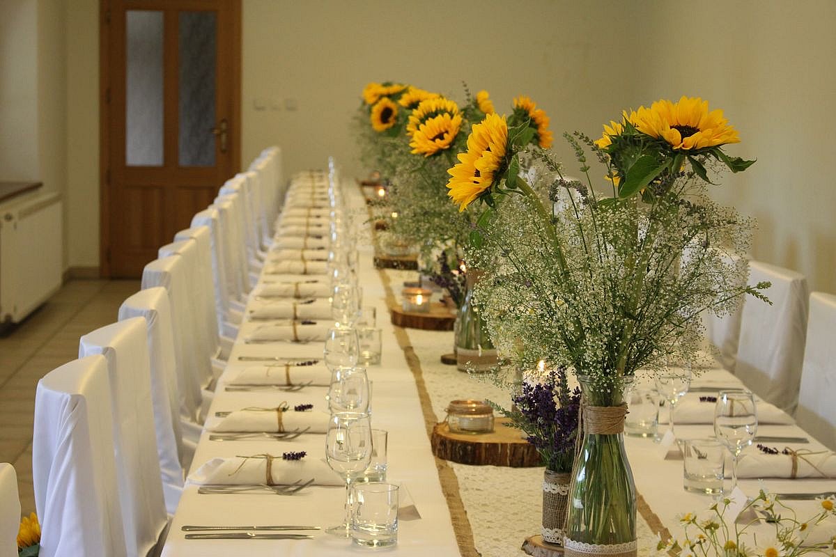 Výzdoba na rodinnú oslavu, slnečnice - Dolné nádvorie, Zámok Smolenice